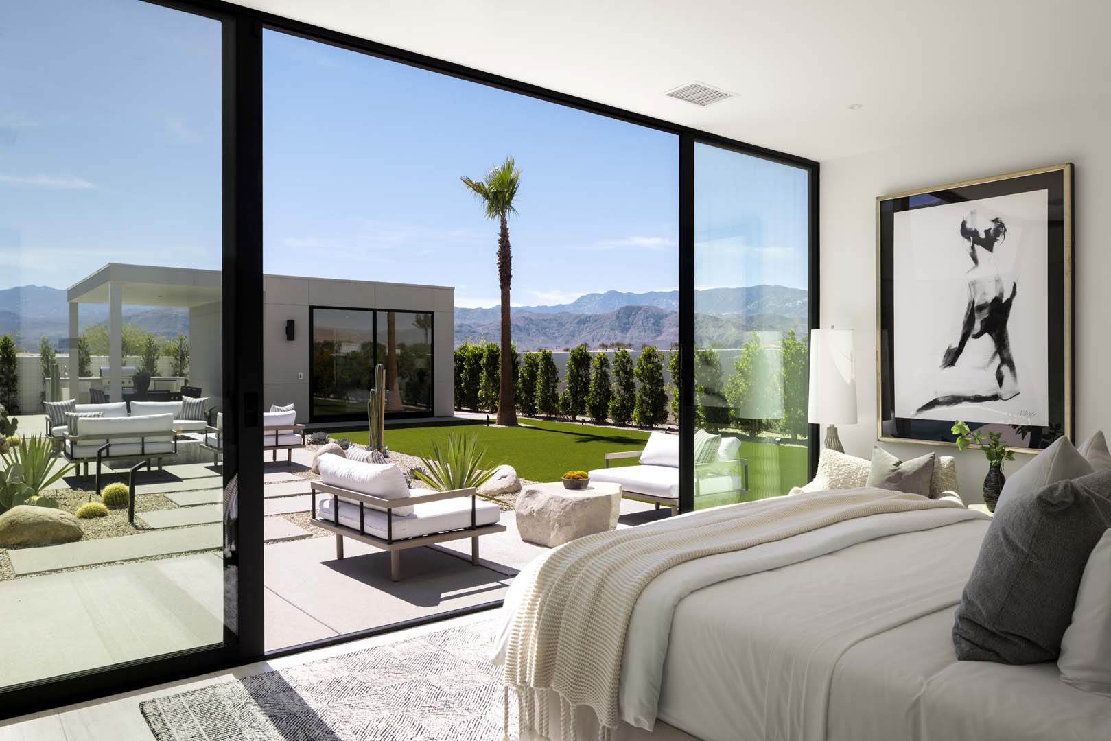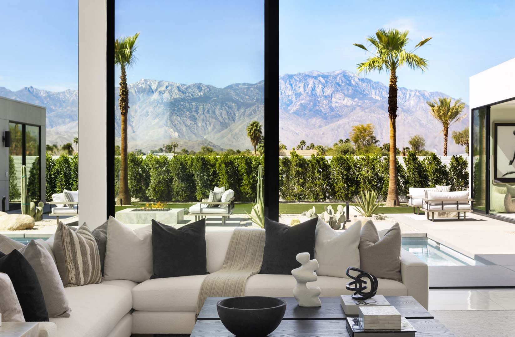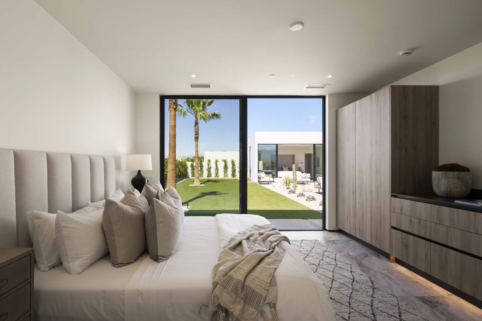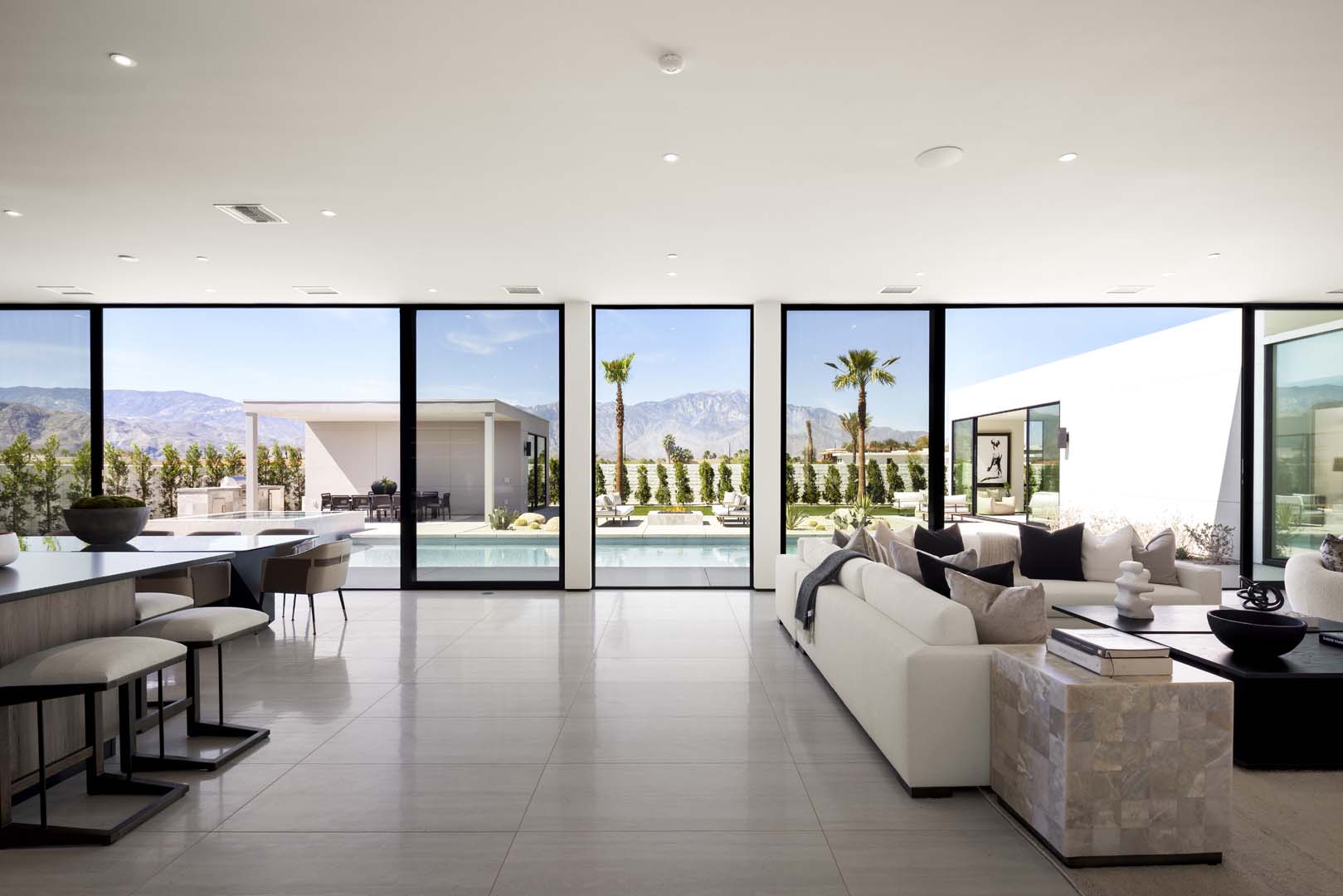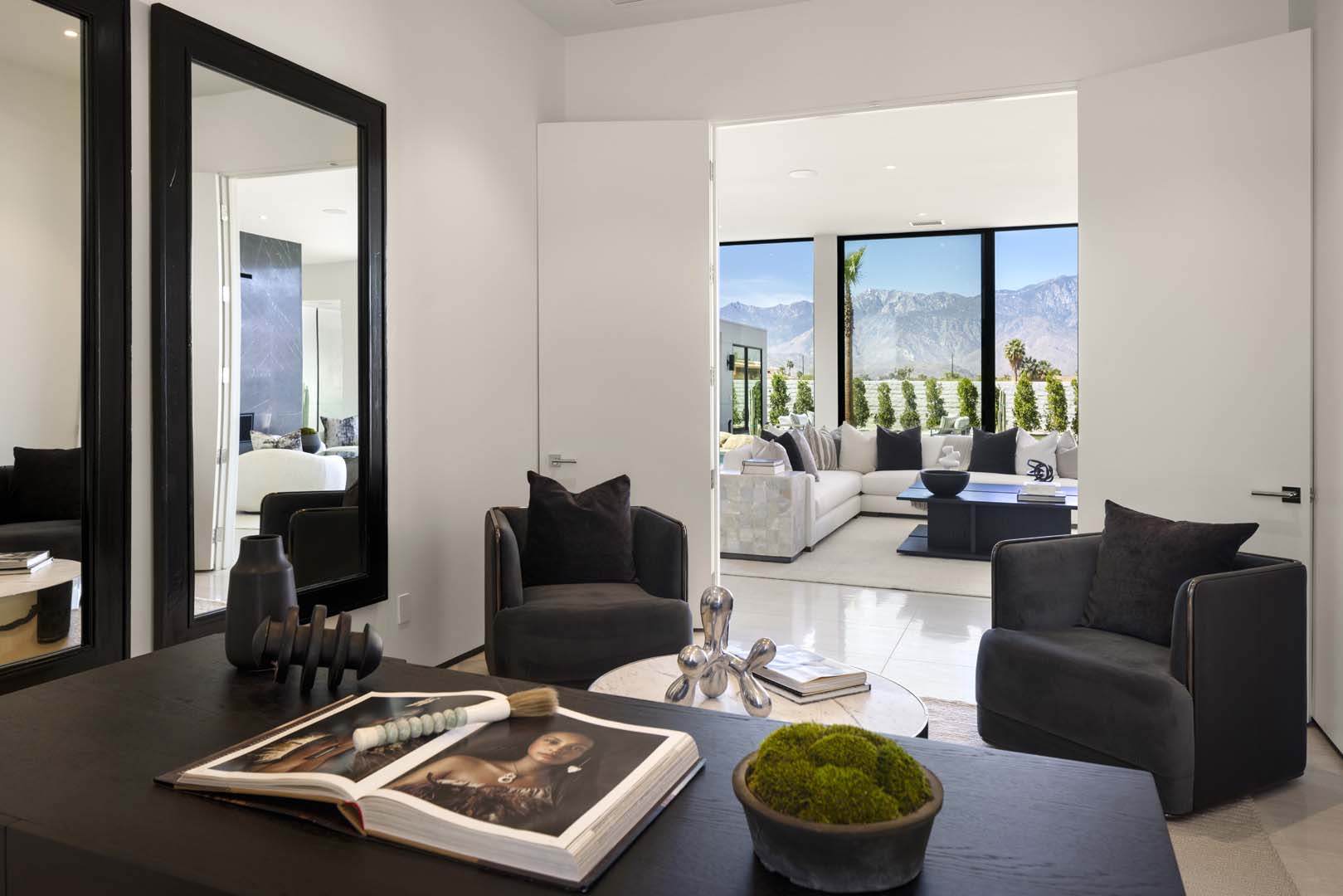 A dramatic modernist estate, Residence Seventeen accentuates scale and light, providing luxurious and expansive open living spaces; all the qualities of a truly grand architectural residence. The home boasts an impressive wall of glass that captures panoramic grand mountain views. The primary suite is attached by a stunning glass corridor connection, an independent pavilion gracefully overlooks a grand resort pool. The site line of the 90-foot long dramatic roof overhang unifies the powerful glass façade and mutes lighting for the media room garden. The breathtaking interior includes a massive free-floating fireplace and stylish Italian floor to ceiling cabinetry with wine column and display. A huge theater/media room with its glass wall to the artfully designed cactus garden are but some of the enlightened architectural features of this stylish home.