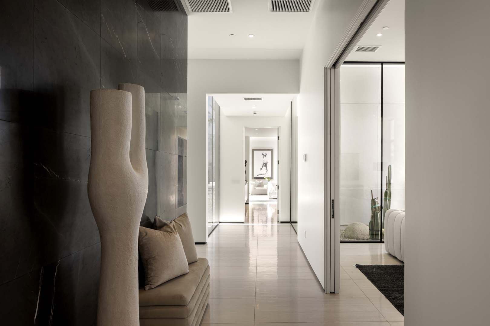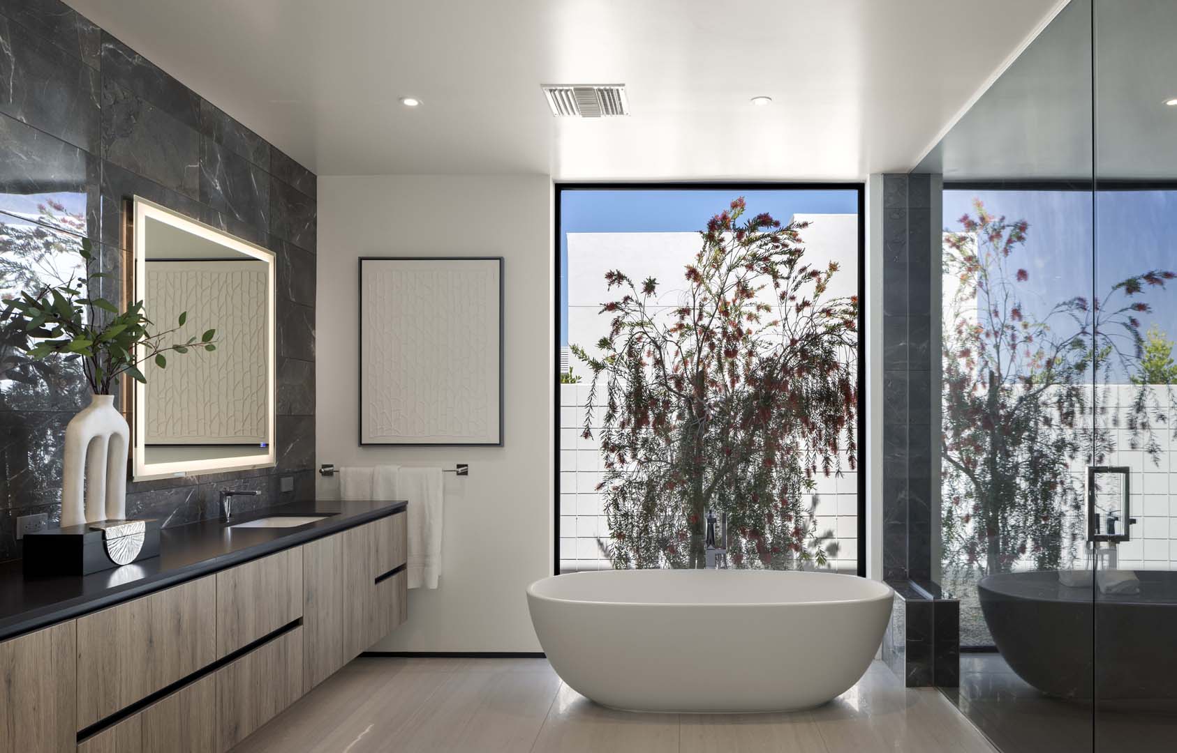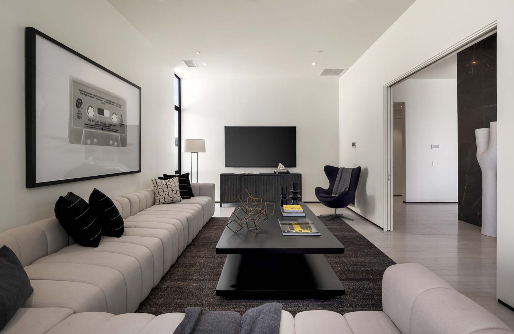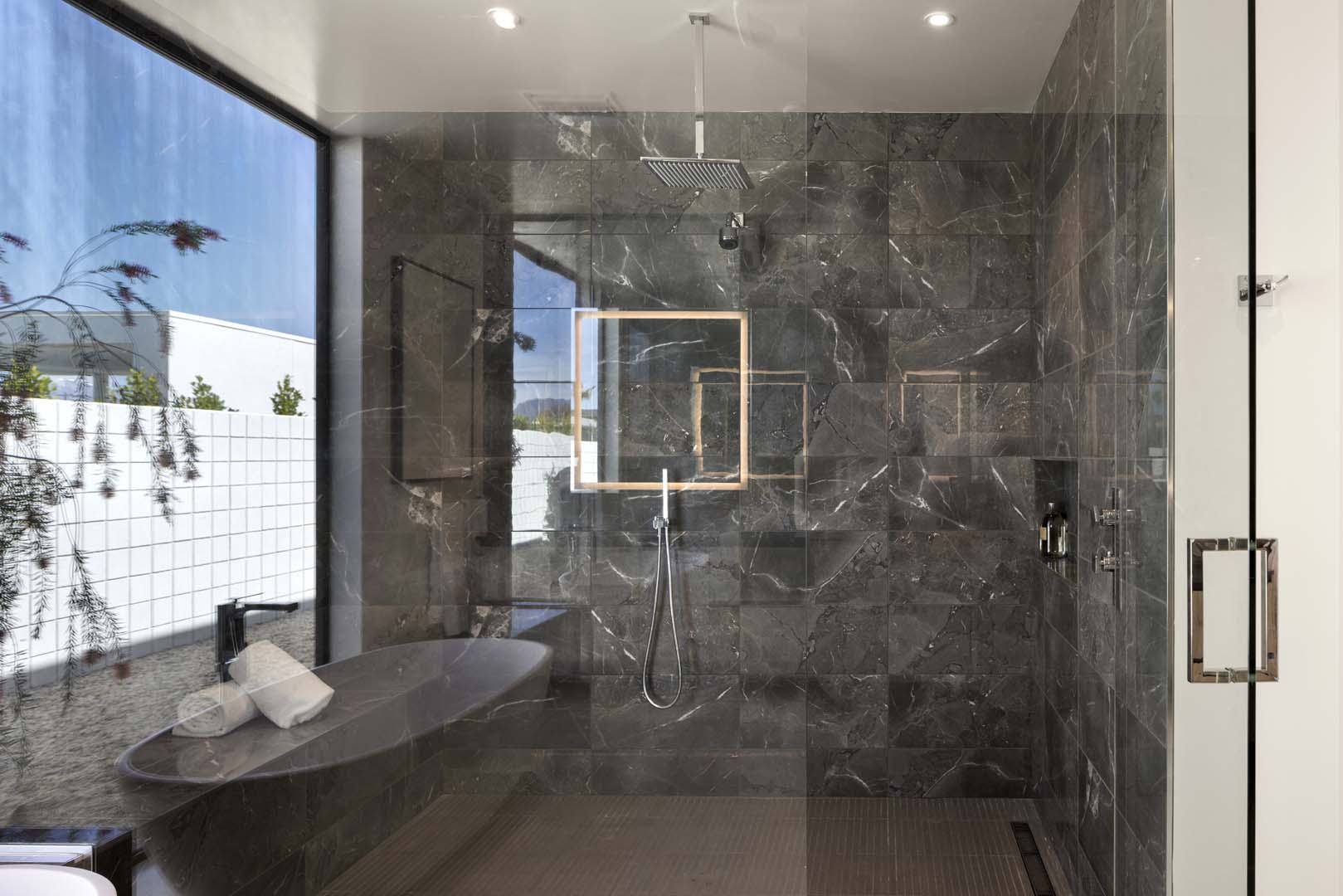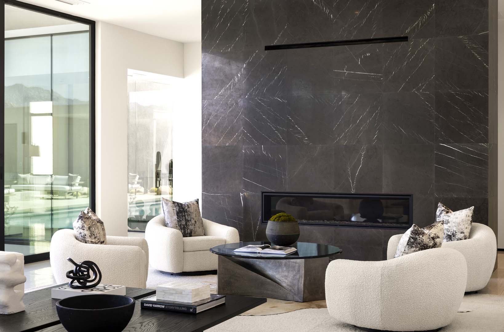 A dramatic modernist estate, Residence Seventeen accentuates scale and light, providing luxurious and expansive open living spaces; all the qualities of a truly grand architectural residence. The home boasts an impressive wall of glass that captures panoramic grand mountain views. The primary suite is attached by a stunning glass corridor connection, an independent pavilion gracefully overlooks a grand resort pool. The site line of the 90-foot long dramatic roof overhang unifies the powerful glass façade and mutes lighting for the media room garden. The breathtaking interior includes a massive free-floating fireplace and stylish Italian floor to ceiling cabinetry with wine column and display. A huge theater/media room with its glass wall to the artfully designed cactus garden are but some of the enlightened architectural features of this stylish home.